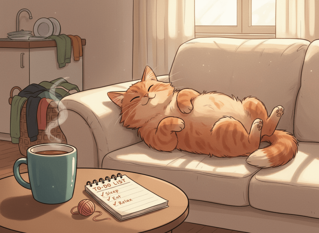 Osservare i “maestri” del relax: Anche un gatto può insegnarci come gestire il tempo e lo stress.